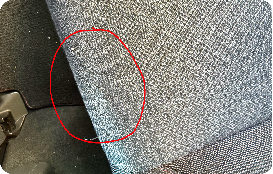 The passenger side of the rear seat has a surface tear, however the remaining seats appear in good condition.